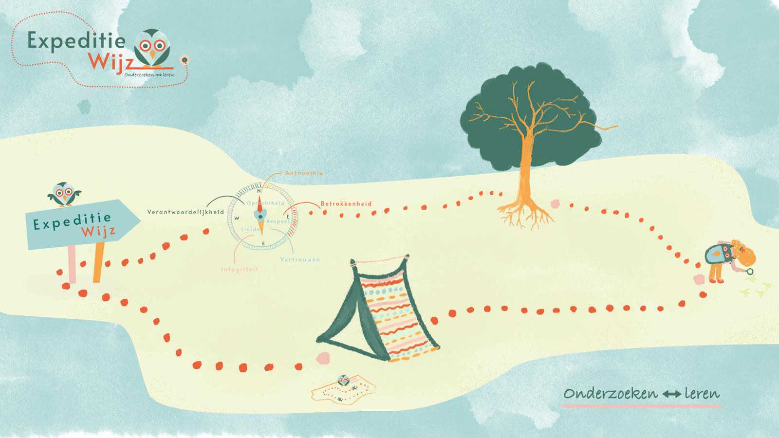 ExpeditieWijz Voor deze gloednieuwe, inspirerende en unieke basisschool heb ik de identiteit mogen ontwikkelen. BEHIND THE IDENTITY: Als we naar het logo kijken zien we een kleurrijk, modern, authentiek en opvallend logo die helemaal past bij het verhaal en de kernwaarden van ExpeditieWijz. Expeditie in de kleur groen die staat voor de expeditie in de omgeving (natuur), de harmonie, het vertrouwen en de ontdekking. Het woord Wijz is oranje en staat voor warmte, energie, creativiteit, speelsheid en toegankelijkheid. De focus in het ontwerp ligt op de let Z in het woord Wijz. Door het onderste gedeelte van de Z langer te maken dient het niet alleen meer als een letter, maar ook als een tak. Op de tak staat Wijzje de uil. De letter Z staat voor de verbinding tussen de binnen en buitenwereld. De tak als onderdeel van de verrijkende leeromgeving die de school de leerlingen wil meegeven. Tot slot de uil (Wijzje de uil). Wijzje de uil is een belangrijk onderdeel van het logo en van het verhaal van ExpeditieWijz. De uil staat symbool voor wijsheid, de kunst, de vrede, de lucht, de toekomst en voor kracht. Daarnaast staat de uil bekend als een gids. “Zij zijn de dierlijke gidsen op ons pad.” Wijzje de uil helpt de leerlingen tijdens hun expeditie op school. Maar ook de bedenkers van ExpeditieWijz vertelden mij dat ze tijdens hun proces naar ExpeditieWijz overal uiltjes tegen kwamen. Als je goed naar Wijzje kijkt zit er nog een ander symbool in verstopt: het (blauwe) hartje. Het hart staat voor de basis kernwaarden van ExpeditieWijz: Liefde, Respect en Oprechtheid. De kleur blauw van het hart staat voor wijsheid en vertrouwen. De overige kleuren van Wijzje verwijzen naar de overige kernwaarden die ontstaan vanuit de basis(het hart): Verantwoordelijkheid, Integriteit, Autonomie, Betrokkenheid en Vertrouwen. Wil je kennismaken met deze nieuwe, toffe en unieke basisschool? Neem dan een kijkje op www.expeditiewijz.nl “De nieuwe basisschool binnen Hengelo. Deze basisschool denkt vanuit het principe ‘onderzoeken = leren’. ExpeditieWijz werkt vanuit het hart; liefde, respect en oprechtheid staan centraal.” In samenwerking met: De beste webbouwster: Studio Jimmy Lou Lefgozers en onderwijsfanaten (Bedenkers/directie Expeditiewijz): Kim Huiskes & Monique Engberink